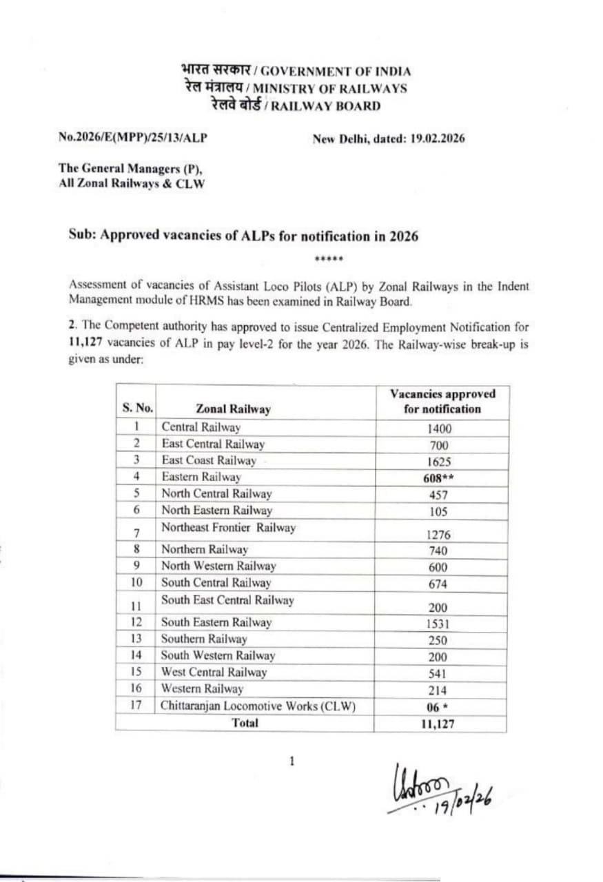 RRB ne Assistant Loco Pilot posts ke liye notification jaari kiya hai. Details niche di gayi hain: